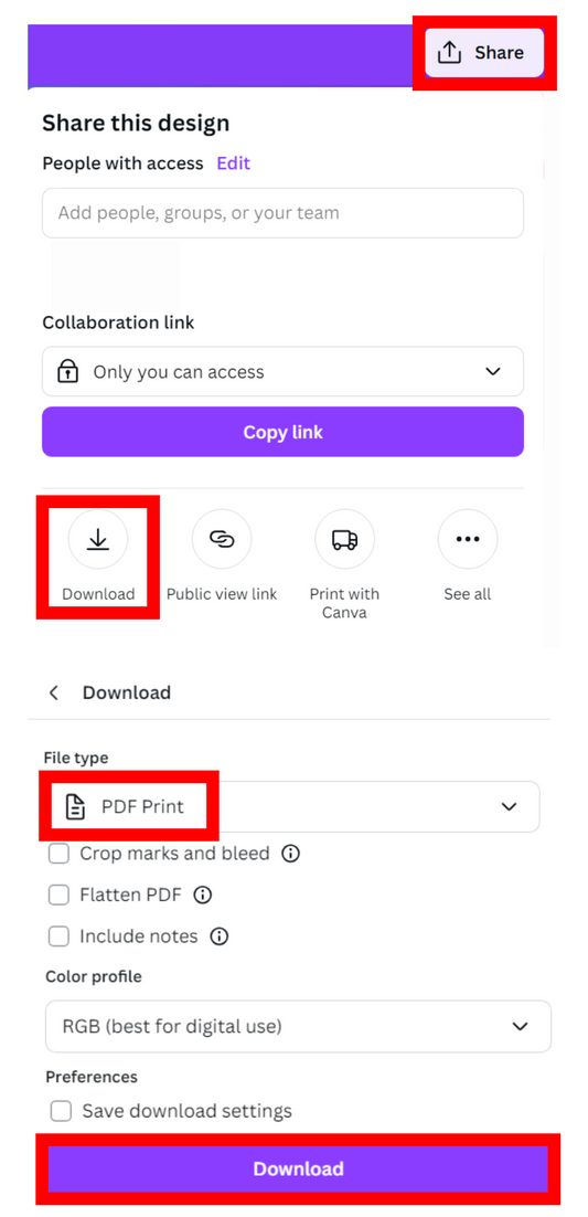 NOTE: Only select "Print & Ship" when you have a completed template that is ready to print.